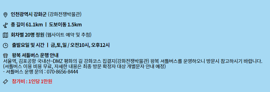 강화코스의 내용은 위와 같으며 신청을 원하시면 아래 링크를 통해 자세한 내용과 신청을 하시기 바랍니다.