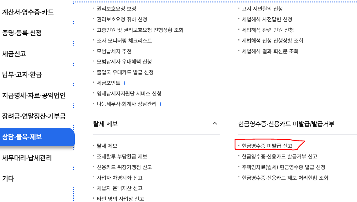 [상담·불복·제보] → [현금영수증·신용카드 미발급/발급거부]