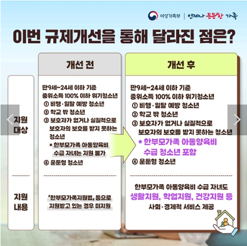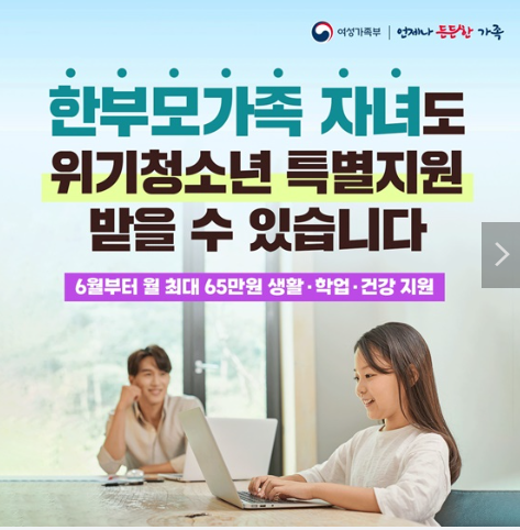 위기청소년 특별지원금 신청 월 65만원 (한부모가족지원 중복 가능, 24세까지)