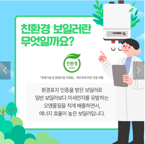 친환경 보일러는 환경표지 인증을 받은 보일러입니다.