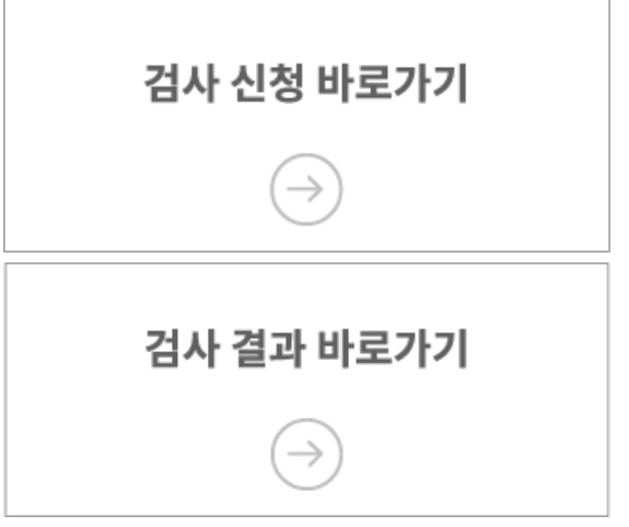 홈페이지 하단에 검사 신청 바로가기 및 검사 결과 확인 탭이 있습니다.