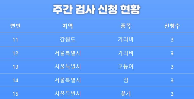 다음으로는 상위 누적 검사 신청 품목이 나오게 됩니다.