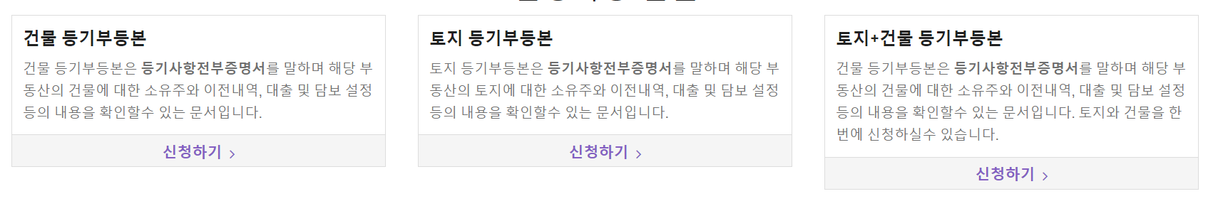 건물등기부등본, 토지, 법인 등 다양한 문서 발급을 원하시나요?