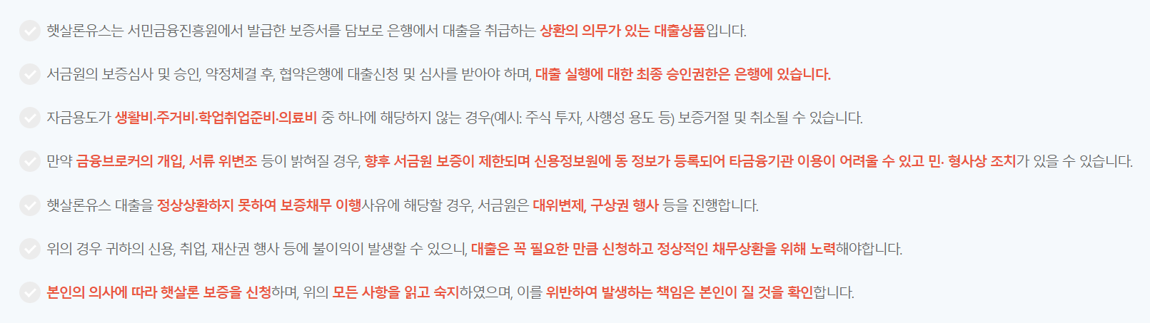 대출을 신청하기 전 위 사항을 숙지하고 이해해야 합니다.