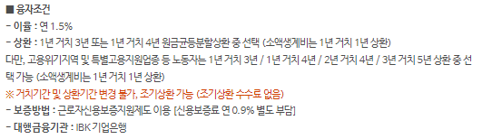 - 보증방법 : 근로자신용보증지원제도 이용 [신용보증료 연 0.9% 별도 부담]