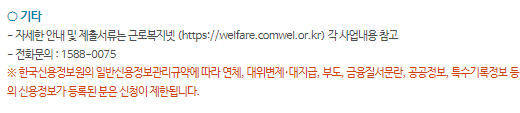 - 접수방법 : 인터넷(근로복지넷 http://welfare.comwel.or.kr) 신청 (공인인증서 필요) 또는 방문접수