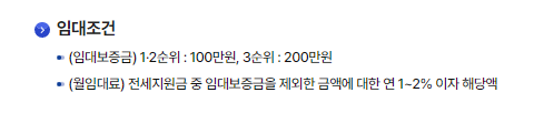 임대보증금: 1·2순위는 100만원, 3순위는 200만원입니다.