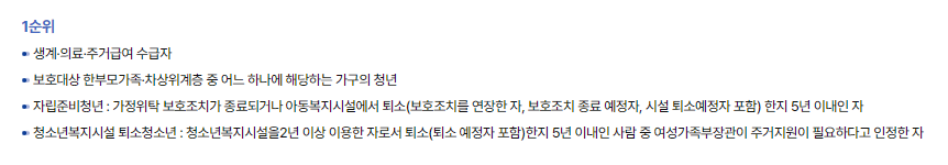 위 내용은 청년전세임대 프로그램의 입주자격과 우선순위에 관한 내용입니다.