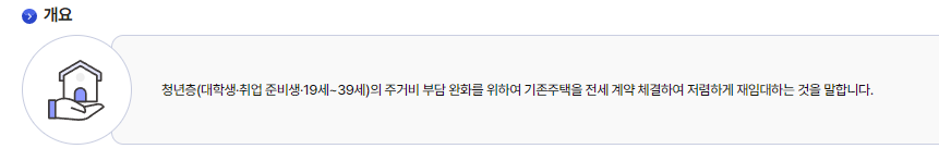 청년층의 주거비 부담을 완화하기 위해 기존 주택을 전세 계약 체결하여 저렴하게 재임대하는 프로그램입니다.