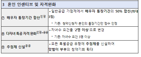- 자녀 가산 포인트 및 신혼특공 혜택 상향 조정