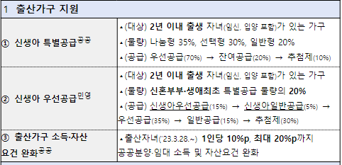 - 출산가구를 위한 특별공급 및 디딤돌 대출 지원