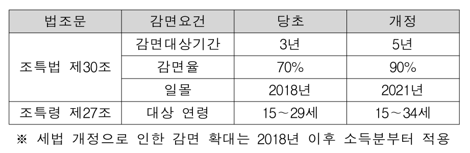 일몰: 당초 2018년 → 개정 2021년 조특령 제27조 대상 연령
