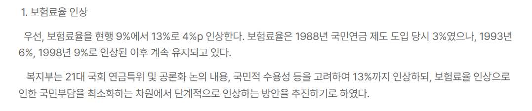현행 9%인 보험료율을 13%로 4%p 인상하는 방안을 발표했습니다.