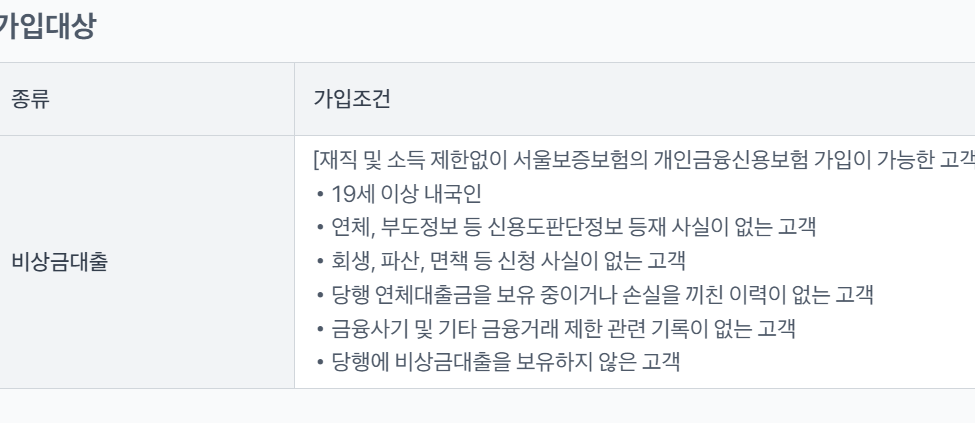 대상: 만 19세 이상, 유효한 신용점수를 보유한 개인(고정소득 불필요)