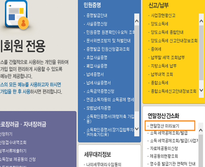 1. 연말정산 미리보기 접근 경로 회원과 비회원 모두 이용 가능