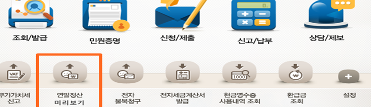 회원: 공인인증서를 이용해 홈택스에 접속한 후, "연말정산 미리보기" 아이콘을 선택합니다.