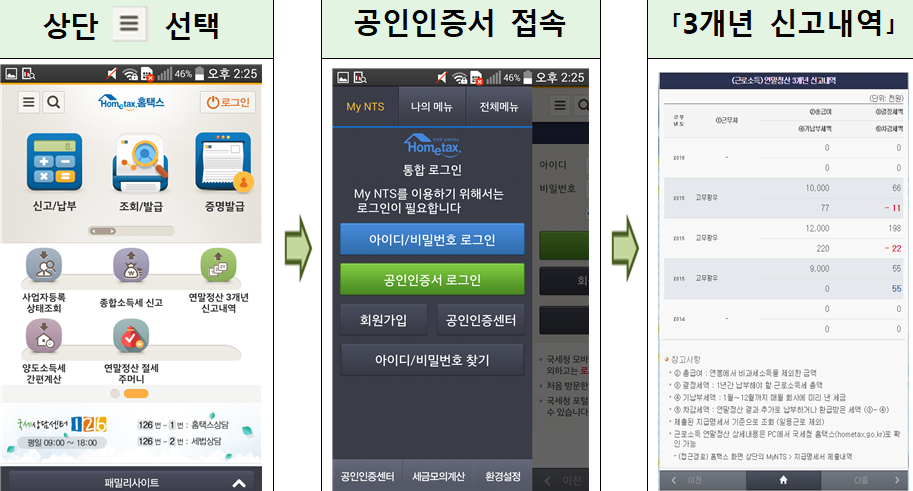절세 도움말(Tip) 및 유의사항 확인 과거 3년 현황 확인 후 Step.02로 이동 처리 결과:
