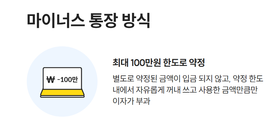 마이너스 통장 방식의 경우 최대 100만 원까지 가능