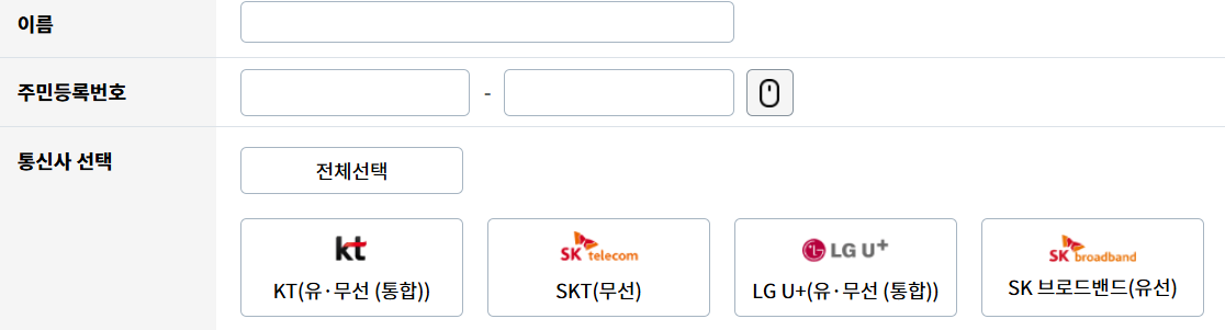 법인 가입자, 만 14세 미만, 외국인 가입자는 온라인 조회 불가능하니 고객센터로 문의하세요.