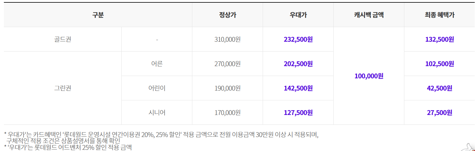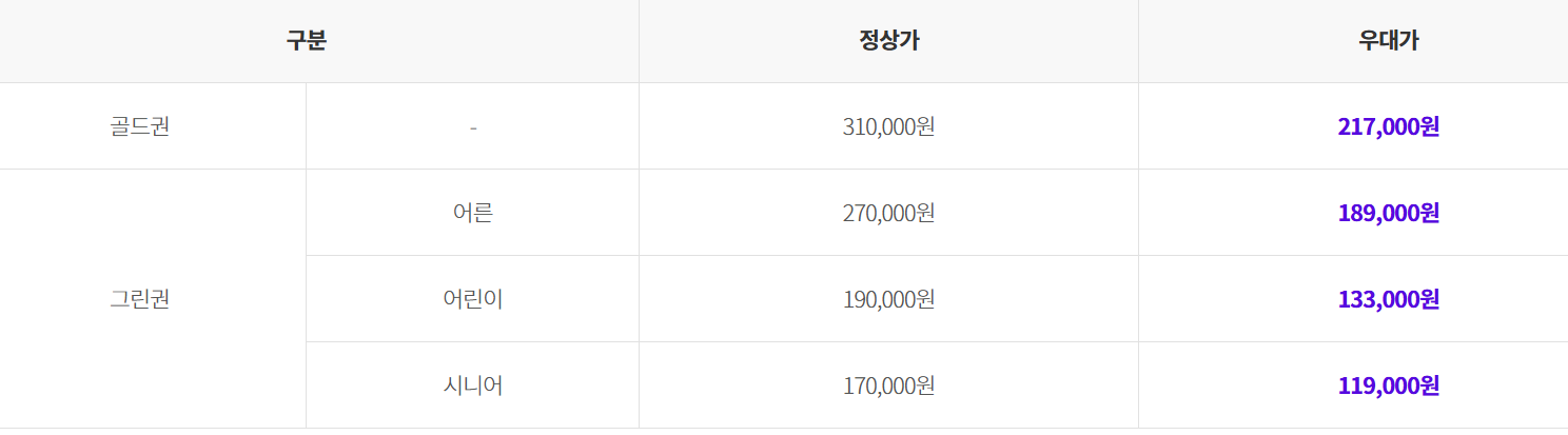 연간회원권도 타이밍과 방법을 잘 잡으면 상당히 저렴하게 살 수 있습니다.