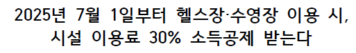 2025년 7월 1일부터 헬스장과 수영장 이용료도 소득공제 대상에 포함됩니다.