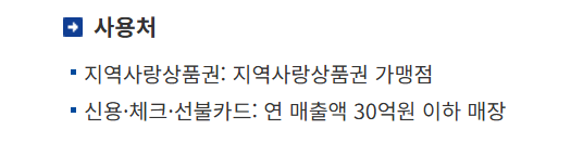 지역사랑상품권: 해당 지역의 상품권 가맹점에서 사용.